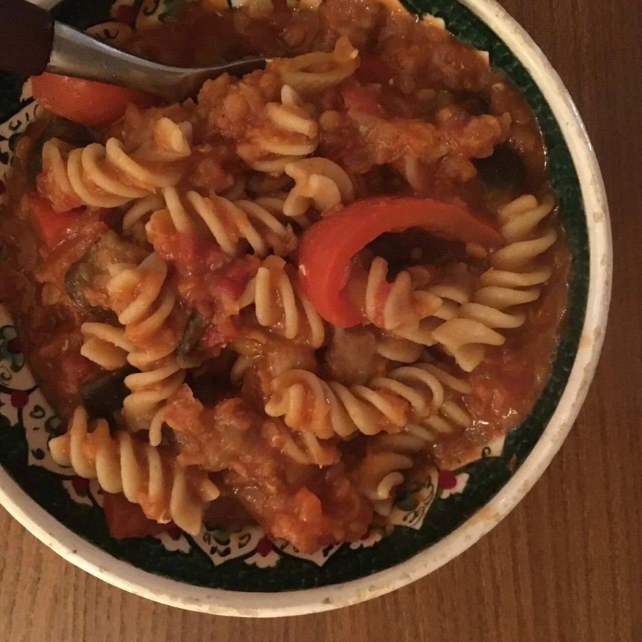 Spicy Lentil and Aubergine Pasta